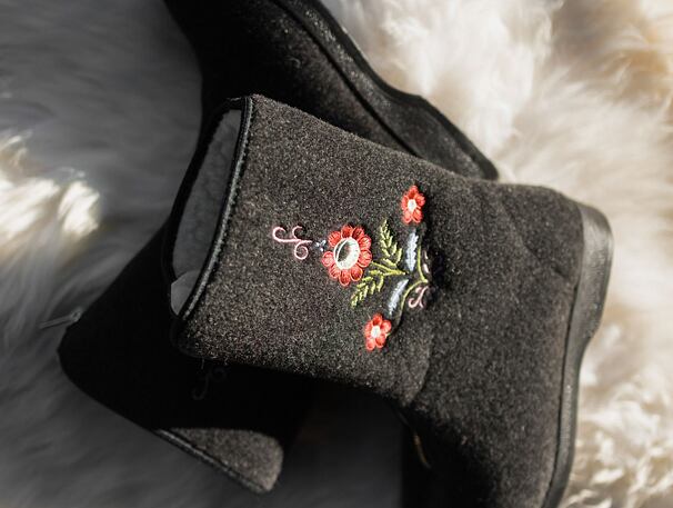 Seniorenschuhe aus Schafwolle mit Reißverschluss für Damen schwarz